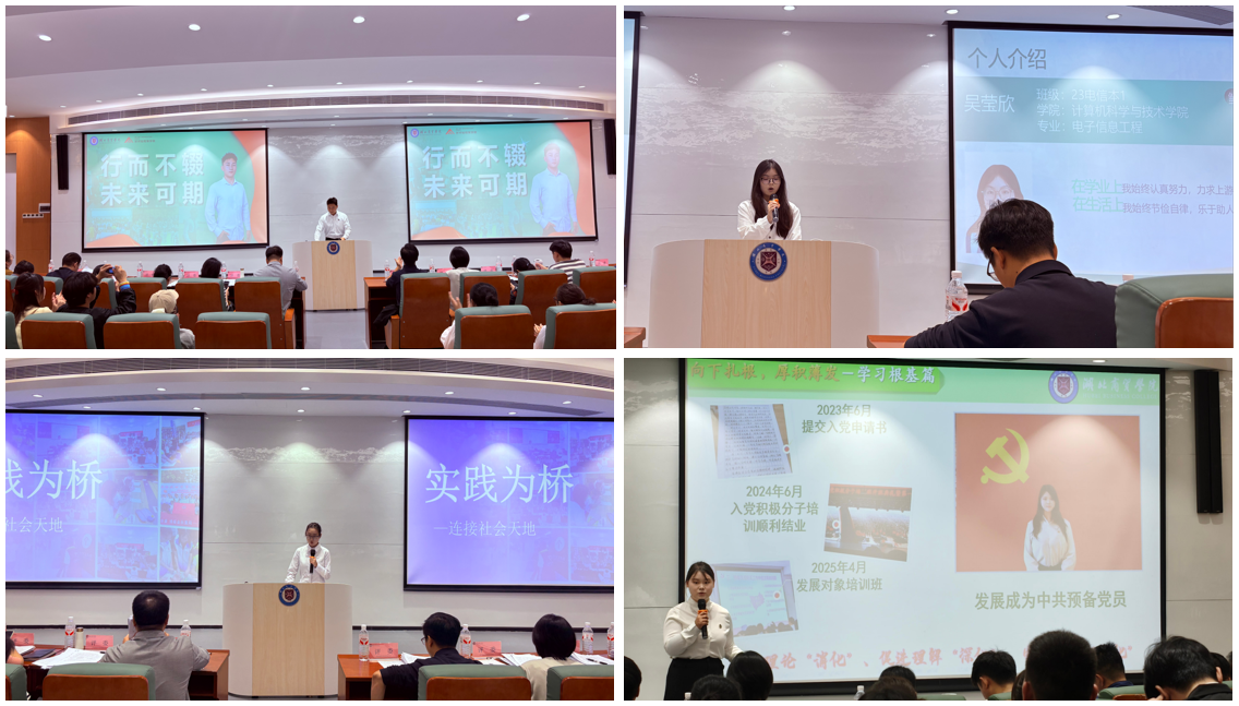 在风采展示环节,各位候选人根据抽签顺序依次登台,结合PPT进行6分钟的个人陈述。他们中,有人聚焦专业深耕,分享在学科学习、科研探索中积累的丰硕成果;有人讲述多元社会实践故事,从志愿服务到实践项目,尽显责任担当与卓越综合素养;还有人清晰梳理未来发展路径,无论是专业深造还是职业规划,都传递出对领域的坚定信念与远大抱负。每位候选人从容不迫、逻辑清晰,接连赢得观众的阵阵掌声。