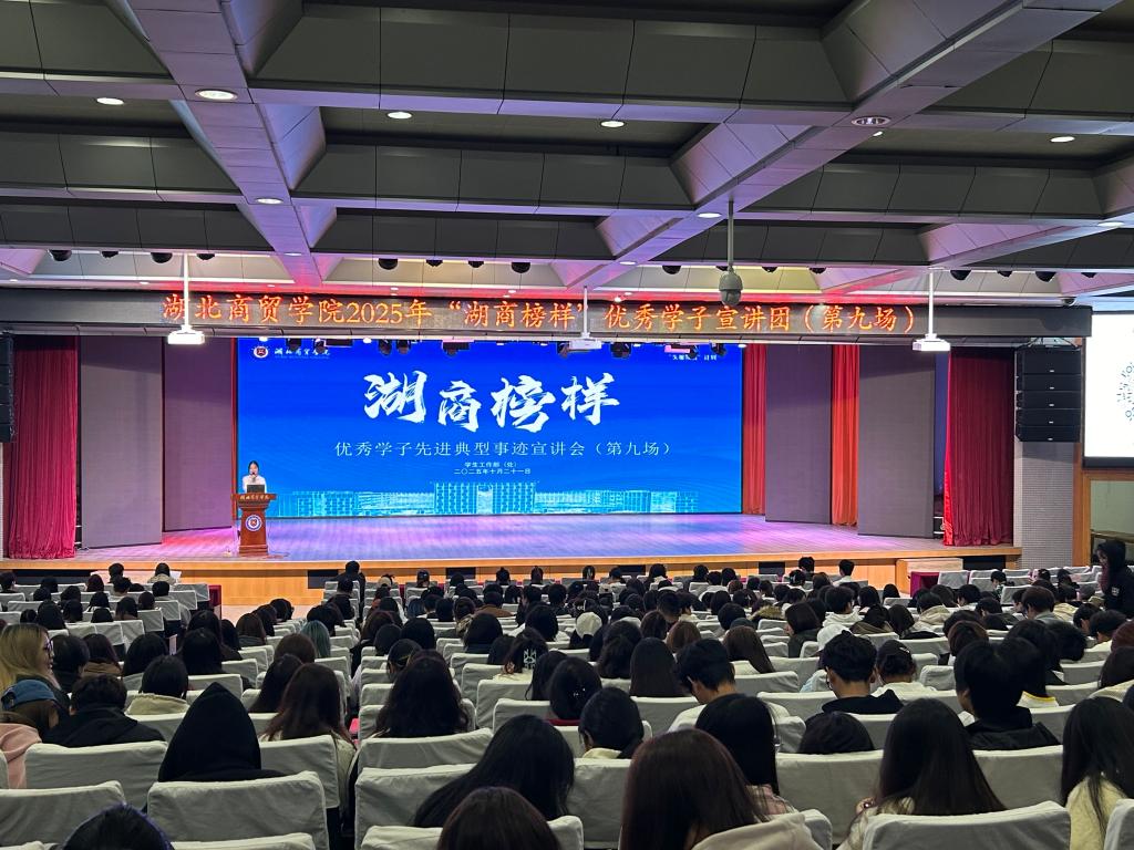 10月21日晚,2025年 “湖商榜样” 优秀学子宣讲团第九场宣讲会在荷香苑报告厅举行。学生工作部(处)处长毛宇、刘红刚、各二级学院党支部书记、辅导员及学生代表齐聚一堂,共同聆听来自不同学院的优秀学子分享他们的成长故事与奋斗经历。